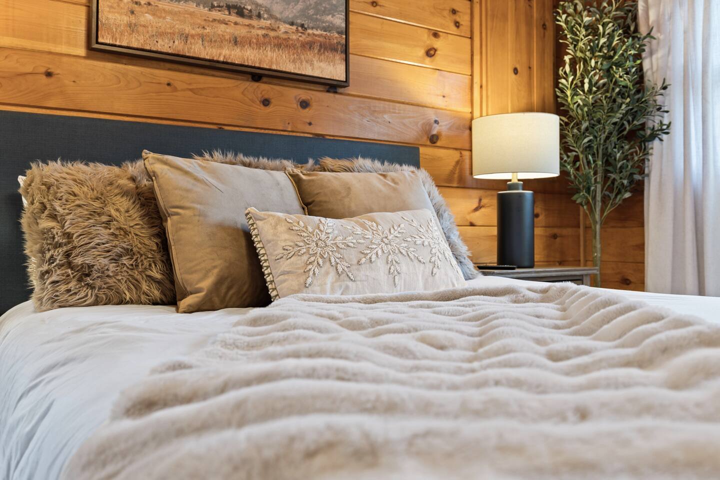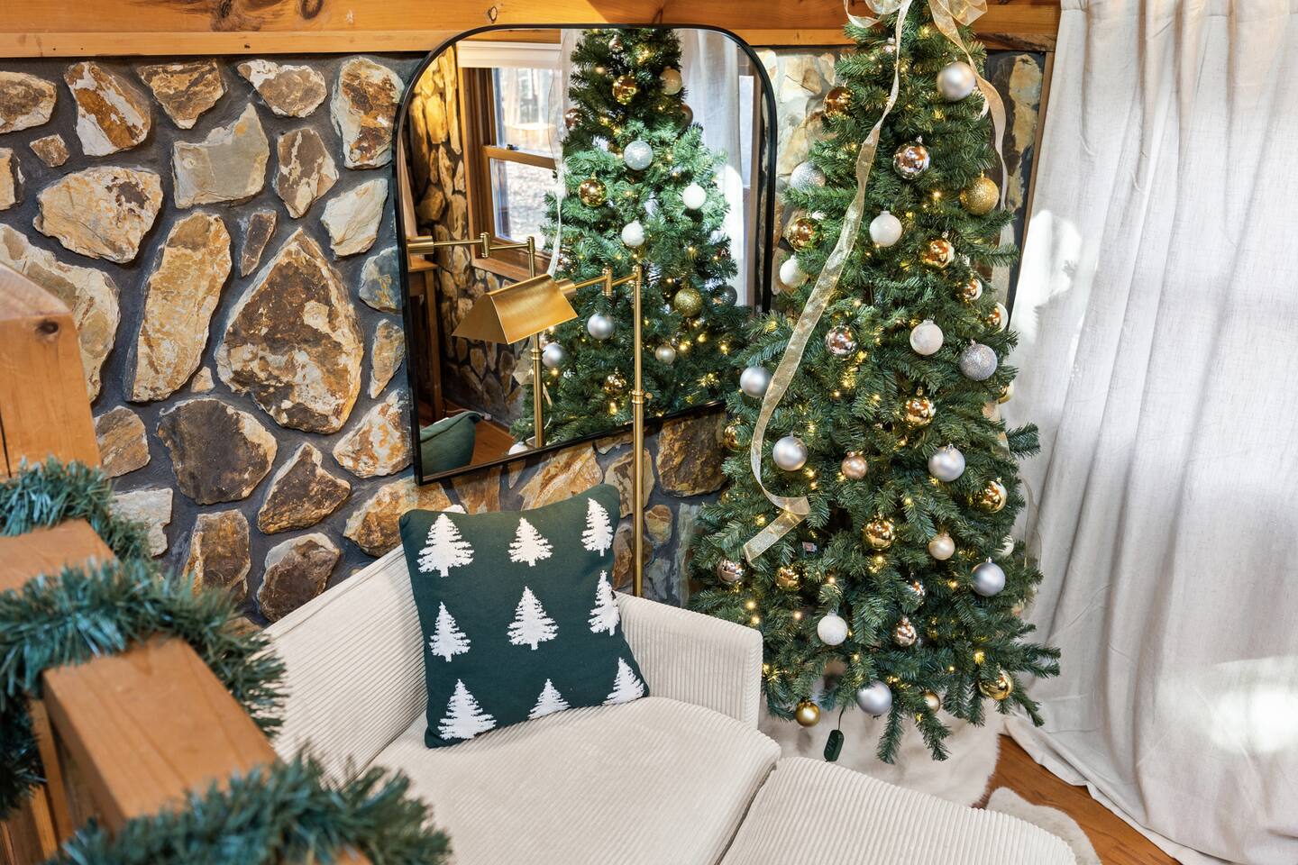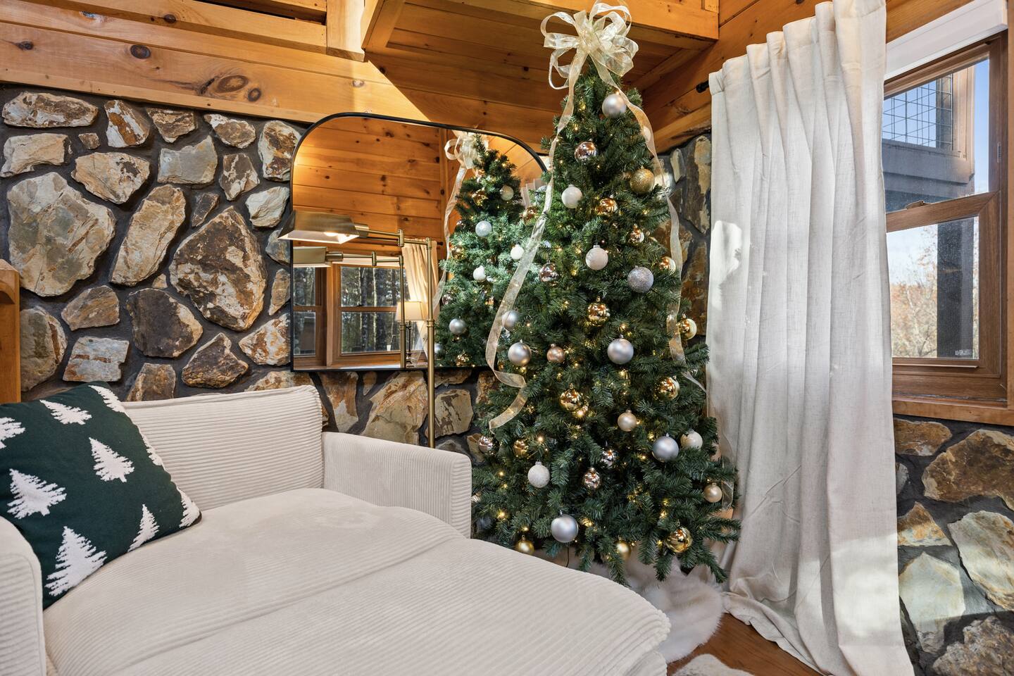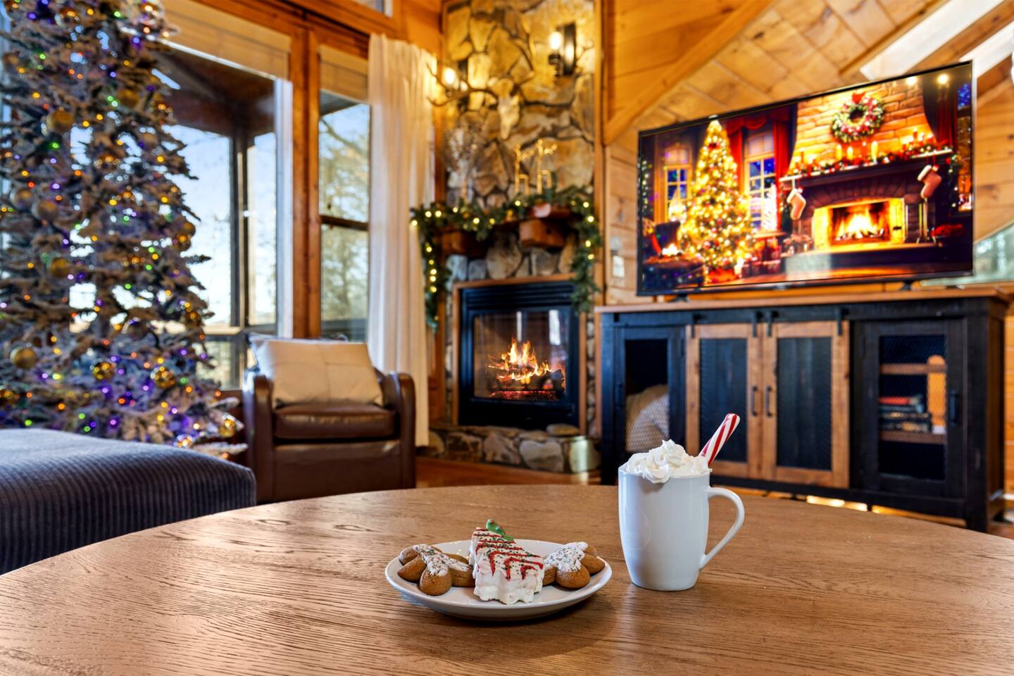 The Antler Lodge is a luxury cabin retreat nestled in the heart of nature, surrounded by trees and perched on a mountainside with breathtaking views. The cabin is a perfect blend of rustic charm and modern elegance, featuring large floor-to-ceiling windows that bring the outdoors in, flooding the space with natural light. -The cabin has an open-concept living area with a stone fireplace, 65” Smart TV, plush furnishings, and warm wood accents that create an inviting atmosphere. -The gourmet kitchen is fully equipped and has an intimate space for dining while providing bar space for additional seating. It is fully equipped with all the essential appliances and utensils you need for a seamless cooking experience. Whether you’re preparing a gourmet meal or a quick snack, you’ll find: ✔ High-quality appliances, including a refrigerator, stove, oven, microwave, and dishwasher. ✔ Small appliances like a coffee maker, toaster, blender, and crock pot for added convenience. ✔ Cookware & bakeware, including pots, pans, baking sheets, and casserole dishes. ✔ Utensils & cutlery, such as knives, spatulas, ladles, and serving spoons. ✔ Dinnerware & glassware, including plates, bowls, mugs, and wine glasses ✔ Basic pantry essentials, like salt, pepper, cooking oil and spices. With everything at your fingertips, you can enjoy home-cooked meals in a stunning setting—whether you’re dining inside or enjoying an alfresco meal on the deck with spectacular views. -Bedroom 1 is a luxurious retreat, featuring a plush king-size bed dressed in luxury linens for a restful night’s sleep. A flat-screen smart TV is mounted for cozy movie nights in bed, while a dresser and closet provide storage for your belongings. The room also boasts a private en-suite bathroom, offering added comfort and convenience with a shower and premium toiletries. Step out onto the upper deck and enjoy watching the sun rise while sipping coffee in the morning. This serene space is designed for both relaxation and indulgence, making it the perfect personal sanctuary within the cabin. -Bedroom 2 offers a cozy yet elegant retreat, featuring a queen-size bed adorned with luxury linens for a blissful night’s sleep. A flat-screen TV is mounted for entertainment, allowing guests to unwind in comfort. The room also includes a private en-suite bathroom. -Bedroom 3 is the ultimate fun zone, perfect for kids and teens—or even the young at heart! This room features full-size bunk beds. A flat-screen TV provides entertainment, while the room truly shines with its board games, arcade games and foosball table, creating an exciting game room vibe. To complete the space, a custom neon sign adds a cool, modern touch, making it the perfect hangout spot for late-night gaming, movies, and unforgettable memories. -This luxury cabin is designed for both relaxation and productivity, featuring a cozy reading nook and a dedicated workspace for remote work. Featuring a plush armchair this space is the perfect spot to unwind with a good book and a warm cup of coffee. A comfortable workstation equipped with a desk, lamp, comfortable chair, and high-speed WiFi, make it easy to stay connected. All while the peaceful cabin atmosphere fosters focus and creativity. -The upper deck offers a perfect blend of comfort and ambiance, with two thoughtfully designed seating areas that invite guests to relax and take in the breathtaking views. Cozy Fire Table Lounge – This seating area features a stylish wicker sofa set, providing plush comfort as guests gather around the elegant fire table. Whether enjoying a morning coffee or an evening cocktail, the warm glow of the fire creates an inviting atmosphere for conversation and relaxation. Scenic Swing & Rocking Chair Retreat – On the other side of the deck, a porch swing and 2 rocking chairs offer a peaceful escape. Perfect for enjoying a book, sipping a glass of wine, or simply soaking in the tranquil surroundings, this space captures the essence of mountain serenity. -For relaxation, step into the private sauna, where the warmth soothes your muscles after a day of adventure. Outside, a steaming hot tub awaits on the deck, offering a perfect spot to unwind while soaking in the stunning views—whether it’s a sunset over the mountains or a starlit sky. The fire pit area provides an idyllic setting for cozy evenings, where you can roast marshmallows, sip wine, and share stories by the crackling fire. Head to the outdoors for fun and relaxation, featuring a variety of exciting games to enjoy in the fresh air. Guests can challenge each other to a friendly match of Giant Jenga, test their strategy with Giant Connect 4, or show off their tossing skills in a game of Corn Hole. These classic outdoor games create the perfect setting for laughter, competition, and unforgettable moments, whether you're spending time with family or friends. Every corner of this luxurious escape is designed for ultimate comfort, privacy, and relaxation—whether you’re looking for a romantic getaway, a family vacation, or a weekend retreat with friends. This is luxury in the wilderness at its finest
