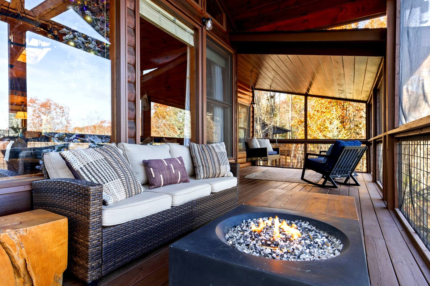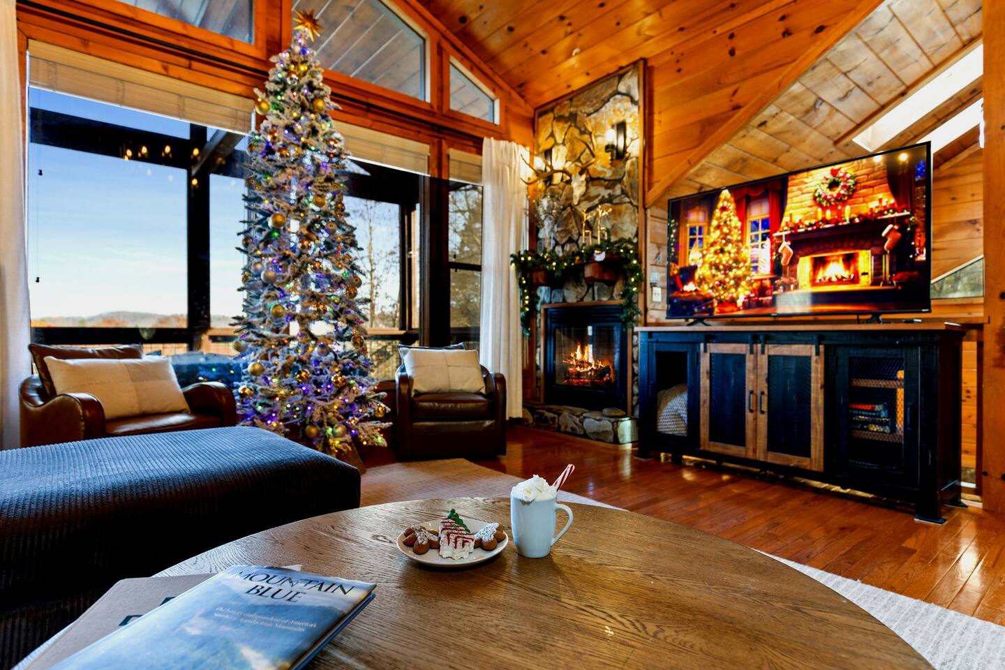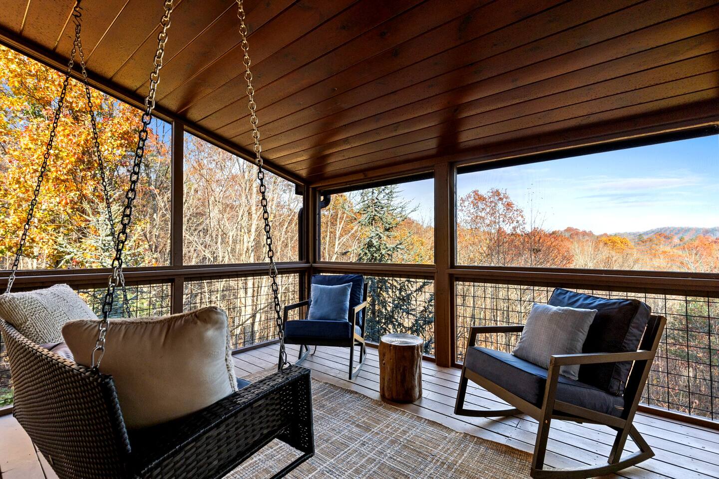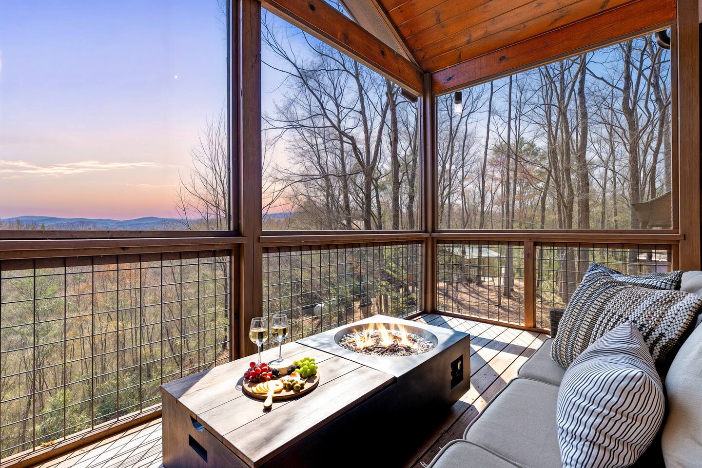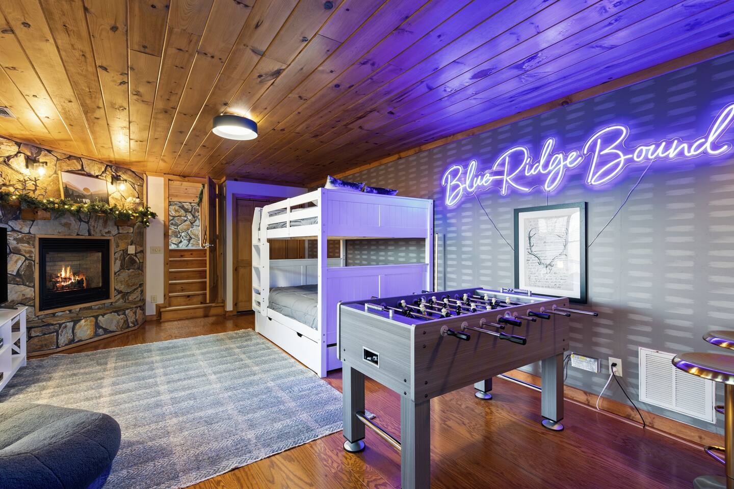 Located approximately 5 miles from downtown Blue Ridge, this cabin offers the serenity of nature and the convenience of downtown activities and restaurants. With its sauna, hot tub, and amazing views, this is the ultimate retreat for anyone seeking a serene escape, perfect for relaxing, rejuvenating, and reconnecting with nature and loved ones. Arcade and board games will provide hours of laughter and friendly competition for all. Enjoy s'mores at the firepit and watch the stars come out.